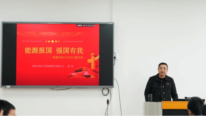 在专题讲座环节,西南石油大学思政实践中心主任黄笛以“能源报国,强国有我”为主题,通过能源领域生动案例,向孩子们传递爱国情怀与责任担当。石油文化VR情景模拟环节更是将活动推向高潮,孩子们佩戴设备穿越历史场景,在沉浸式体验中感悟石油精神的磅礴力量。