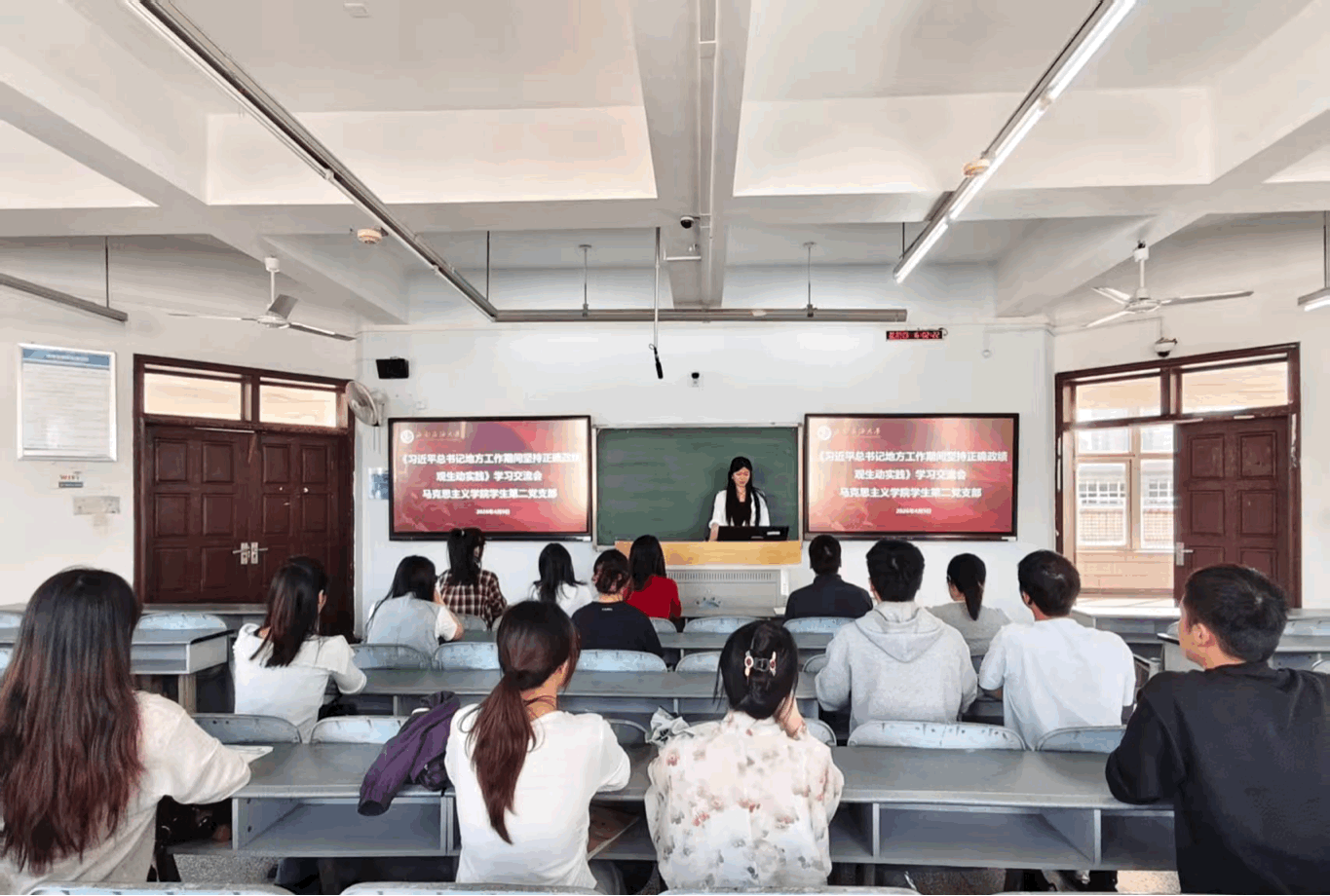与会党员围绕学习内容进行深入研讨。党支部成员屈婷同志结合自身学习体会,分享学习心得。她表示,通过深入学习习近平总书记地方工作实践,深刻感受到总书记深厚的人民情怀和强烈的责任担当。作为马克思主义学院的学生党员,要自觉以总书记为榜样,将学习成果转化为坚定理想信念、提升理论素养、服务同学社会的实际行动,在新征程上展现青年党员的担当作为。梁颜同志表示,习近平总书记的地方工作实践是新时代党员干部锤炼党性、干事创业的生动教材,对于青年学生树立正确政绩观、成长观具有重要指导意义。