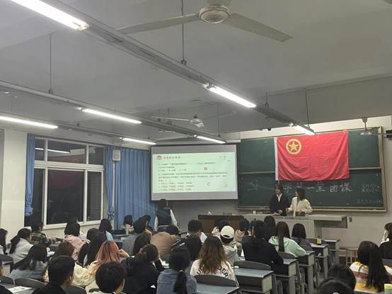 为迎接党的二十大,庆祝中国共青团成立100周年,进一步加强新生团员的政治思想观念,增强团员对团组织的深刻认识。3月20日晚,马克思主义学院2021级思想政治教育团支部于博学楼b307开展“开学第一堂团课”。本次团会由王楠楠、张蕾主持,2021级思想政治教育专业全体本科生参加。