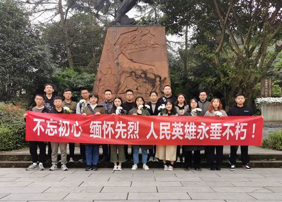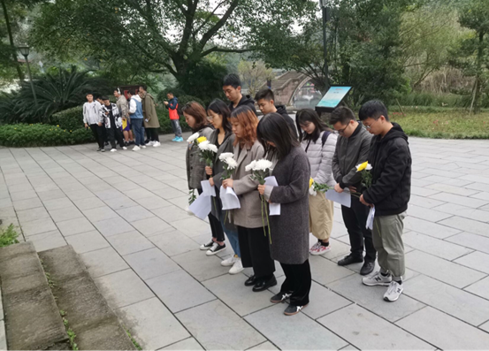 王铭章将军的爱国精神感染了在场每一位参观者,全体学生向王铭章将军默哀三分钟以示敬意。随后大家纷纷敬献鲜花,庄重的三鞠躬更是表达了当代青年学生对革命先烈的深切哀悼和无尽的敬仰之情。“缅怀先烈,不忘初心”,在革命前进的道路上,新时代青年要不断吸取革命先烈自强不息、坚韧不拔、勇于实践的精神,做中国特色社会主义事业的建设者与接班人。学生们在将军墓前庄严承诺:努力学习,科研报国,继承和发扬革命先辈的精神和遗志,为祖国加油,为民族争气,自觉肩负起中华民族伟大复兴的历史使命。