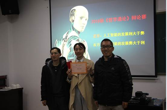 2018年12月27日晚,马克思主义学院2018秋《哲学通论》结课展示暨“学哲学.善思辨”主题辩论赛在思学楼D507举行。出席并担任此次比赛的评委老师是马克思主义学院的崔发展、任重远、赵聃、李蒙、张培高、刘星、张健丰、高国良、郑超等9位老师。辩论赛由马克思主义学院2018级硕士研究生杨万兴主持。