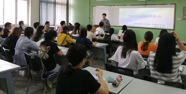 为增强2018级研究生新生的安全意识,提高自我保护能力,响应上级创建平安校园的号召,马克思主义学院于9月19日在博学楼A505召开了新生校园安全教育主题班会。本次班会由2018级兼职班主任韩宏博主持。