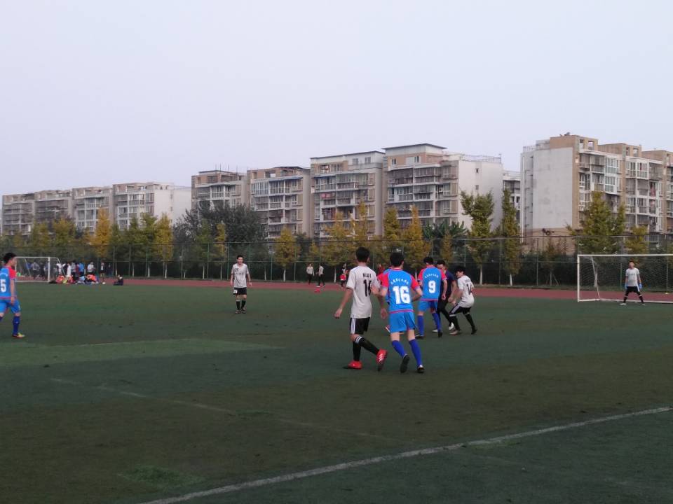 为增进友谊﹑交流经验﹑提高技术,11月30日下午,我院足球队与外国语学院足球队在二期运动场举行了一场精彩绝伦的友谊赛。随着一声哨响,比赛开始,身披白色球衣的外国语学院足球队率先开球,身披蓝色球衣的我院队员积极防守。双方你来我往,上演了一次次精彩的攻防演练。上半场我院队员气势如虹,接二连三突破对方的中场和后卫,开场5分钟就攻破了对方球门。下半场双方换场,外国语学院进行了人员调整,奋起反击,球赛变得更加激烈和精彩。