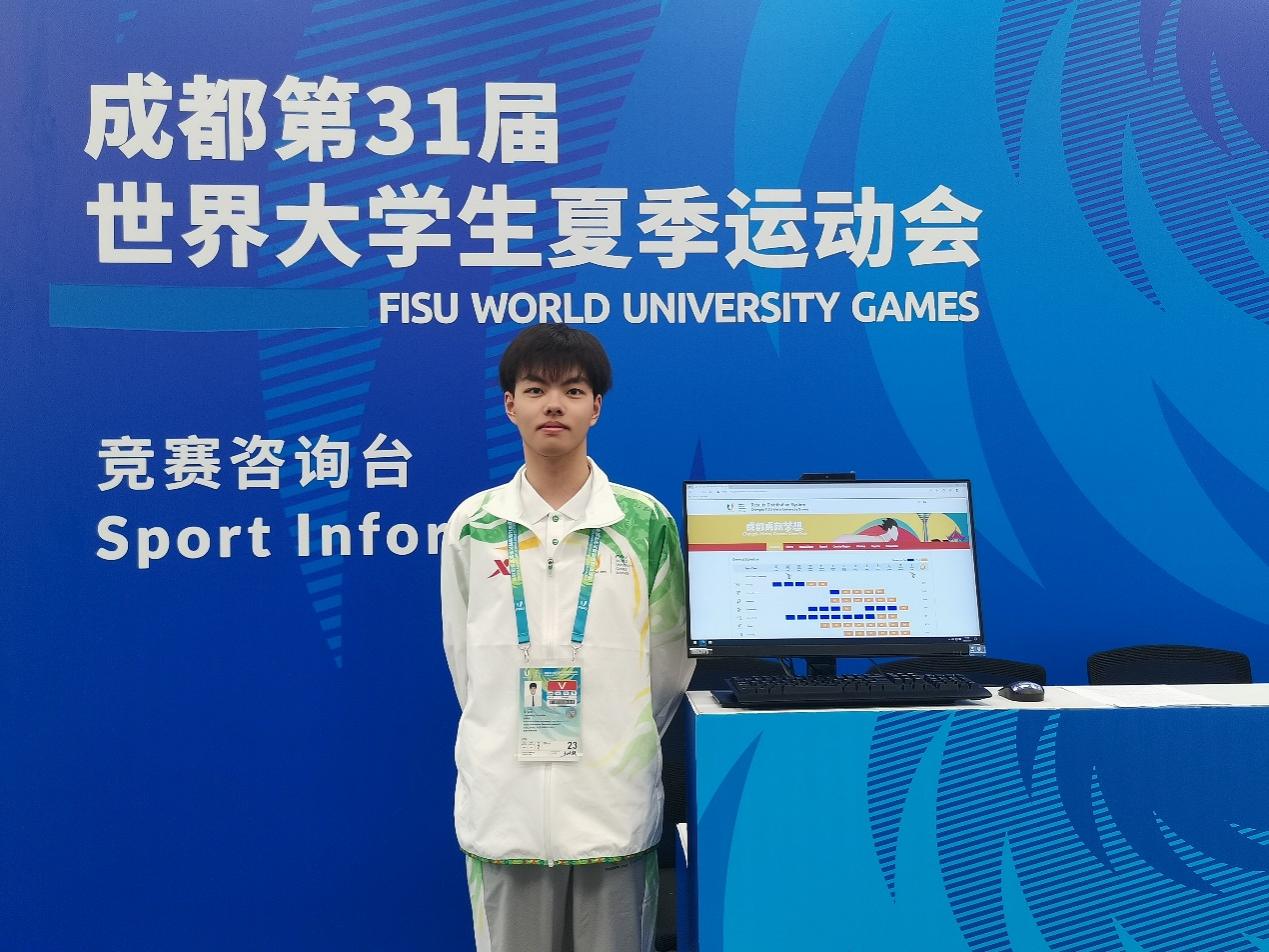 李俊黎:成为成都大运会志愿者是一件十分幸运而无比光荣的事情,我的岗位是凤凰山体育公园篮球场馆中心的竞赛咨询助理,主要负责向代表团提供竞赛时间表、训练时间表、比赛名单、成绩结果等竞赛信息和服务。我和小伙伴们秉承“奉献、友爱、互助、进步”的志愿精神,用扎实的业务能力和饱满的工作热情,为各国代表团打造了一个细心周到、充满活力的竞赛咨询台,向世界展现了新时代中国青年的青春风采与责任担当。