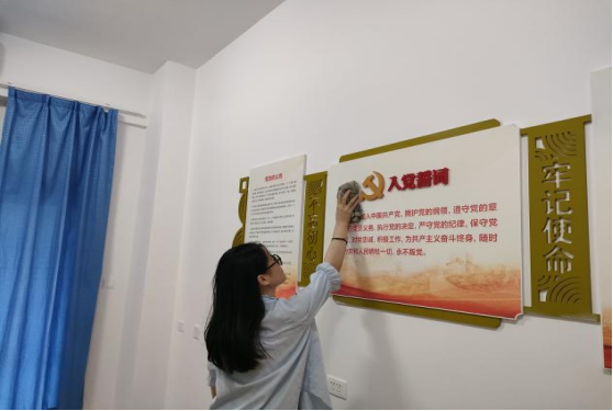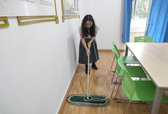 党支部成员携带清扫工具,按时在工作站门口集合,同学们各司其职并相互配合,充分发扬不怕脏、不怕累的精神。对工作站的阳台、地板、书桌进行清扫,同时,将书架上的书籍进行分类整理、统一归放。经过打扫后的学生党员工作站桌椅摆放整齐,图书放置有序。