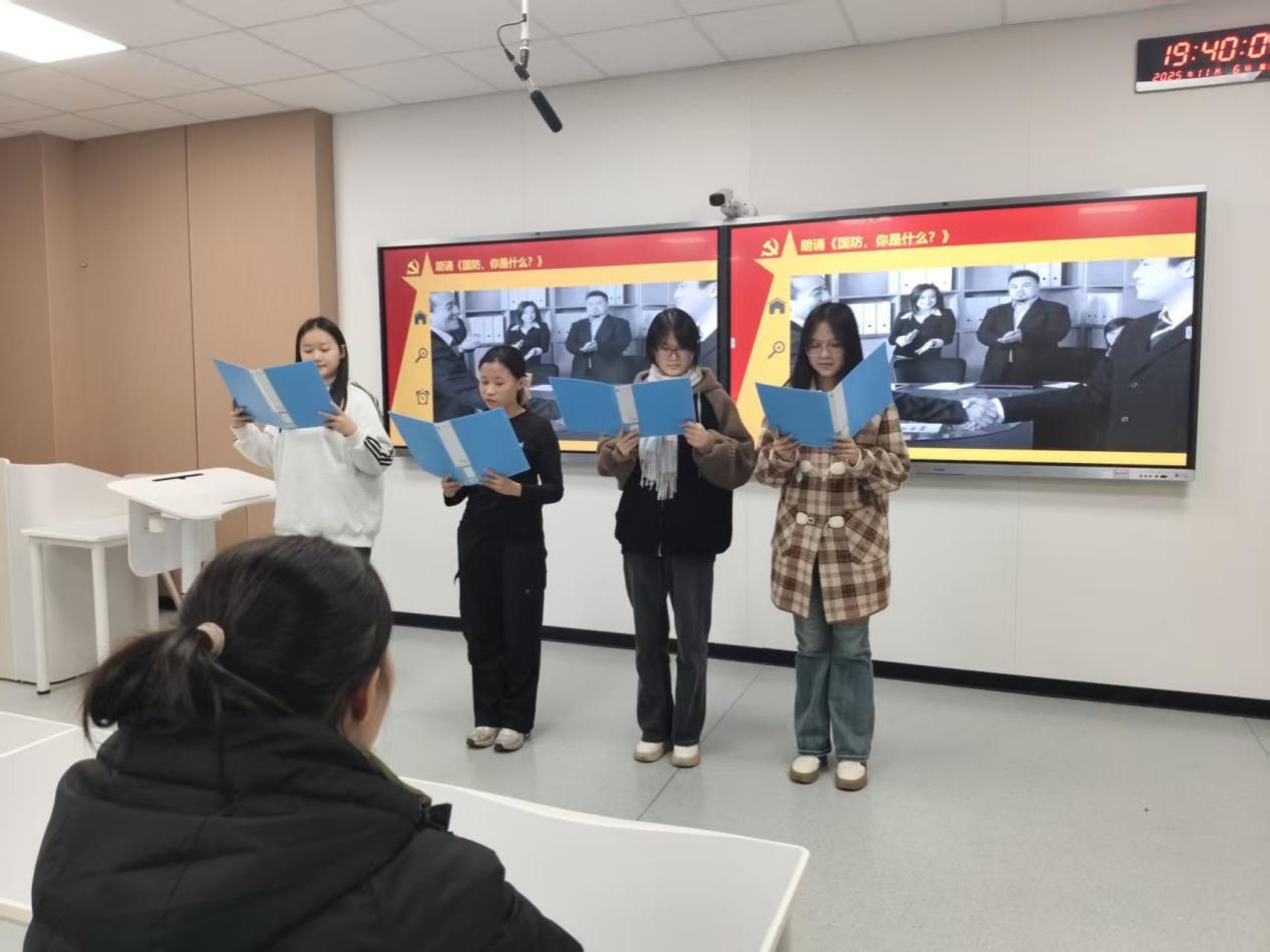 此次团日活动还安排了诗朗诵《国防,你是什么?》与网络安全情景剧展示,以艺术形式激发同学们的爱国热情与维护国家安全的责任感。最后,同学们分享网络安全相关故事与感受,团支部介绍树立正确网络安全观的重要性,同学们纷纷响应,以坚定决心维护国家安全。