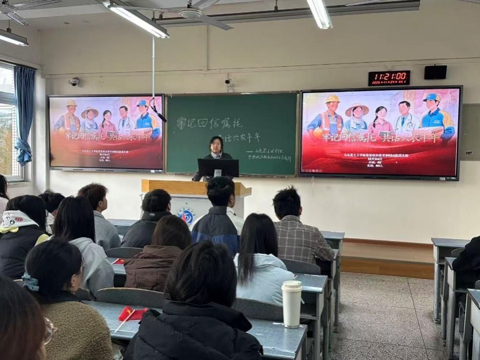 为深入学习贯彻习近平总书记重要回信精神,引导青年学生厚植家国情怀、明确职业方向,11月24日,马克思主义学院思想政治教育2024级团支部在博学楼B302开展“牢记回信嘱托,共话兴农丰年”主题团组织生活,2024级本科生全员参与。
