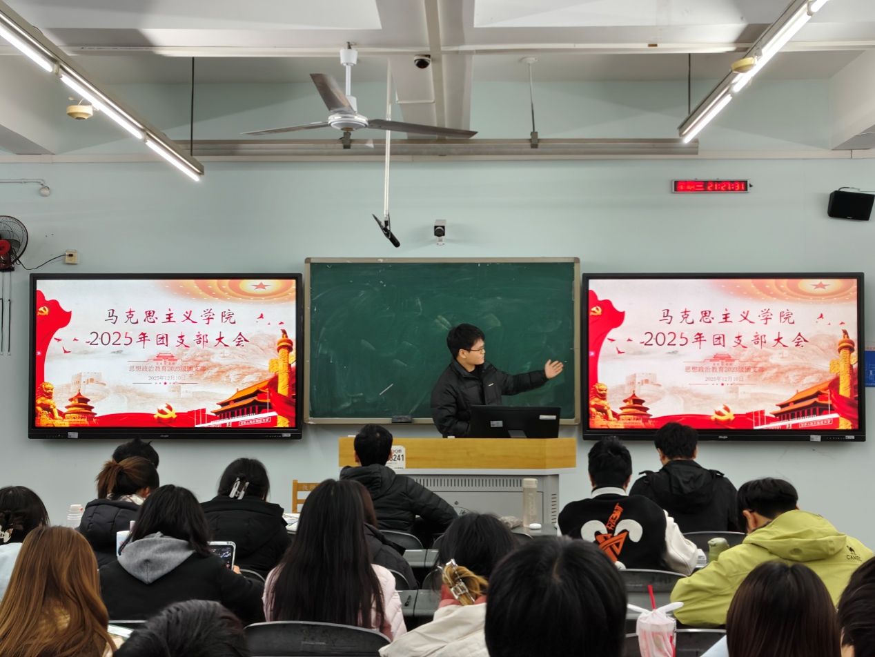 12月10日,马克思主义学院思想政治教育2023级1班和2班团支部在思学楼A416联合召开支部委员大会,开展本年度团员评议工作。会议由团支部书记张欣、莫坤成主持,全体2023级本科团员参与。