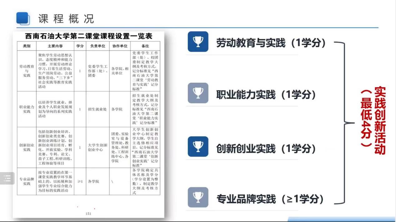 张馨艺老师就西南石油大学第二课堂及课程做了详细介绍,并从劳动教育实践、职业能力实践以及创新创业实践三个方面系统地讲解了第二课堂对于大学生的重要意义。张老师鼓励同学们积极参加日常生活劳动、生产顶岗、“三下乡”等实践活动,树立崇尚劳动、尊重劳动、热爱劳动的正确劳动观。同时,张老师希望同学们能够做到一课与二课结合,理论与实践结合,不断提高自己的实践能力。在创新创业实践方面,张老师建议同学们培养创新思维,提高创新自主性,积极参加创新活动以及创新创业竞赛,更好地拥抱大学生活,促进自身发展。