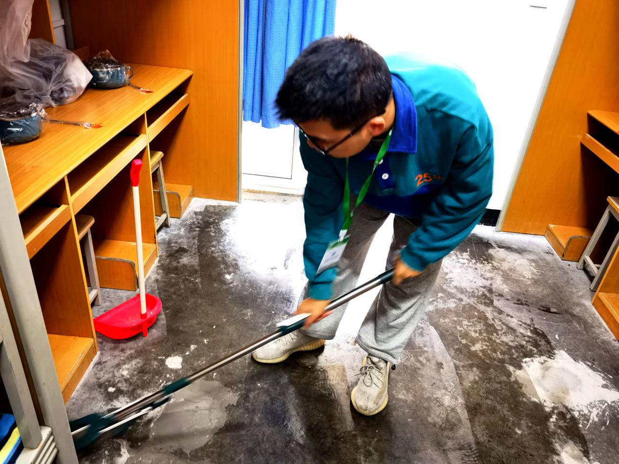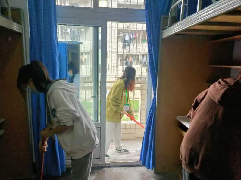 一大早,志愿者们便带上清洁工具,分为四人一组开始对新生宿舍进行卫生扫除。大家打扫细致入微,从阳台到洗手间,从床铺到墙面,不放过任何一个卫生死角,对每一间宿舍进行全面清扫。在所有志愿者的共同努力下,新生宿舍窗明几净,焕然一新。楼栋宿管阿姨们称赞着大家的劳动成果,每位志愿者的脸上都洋溢着骄傲的笑容。