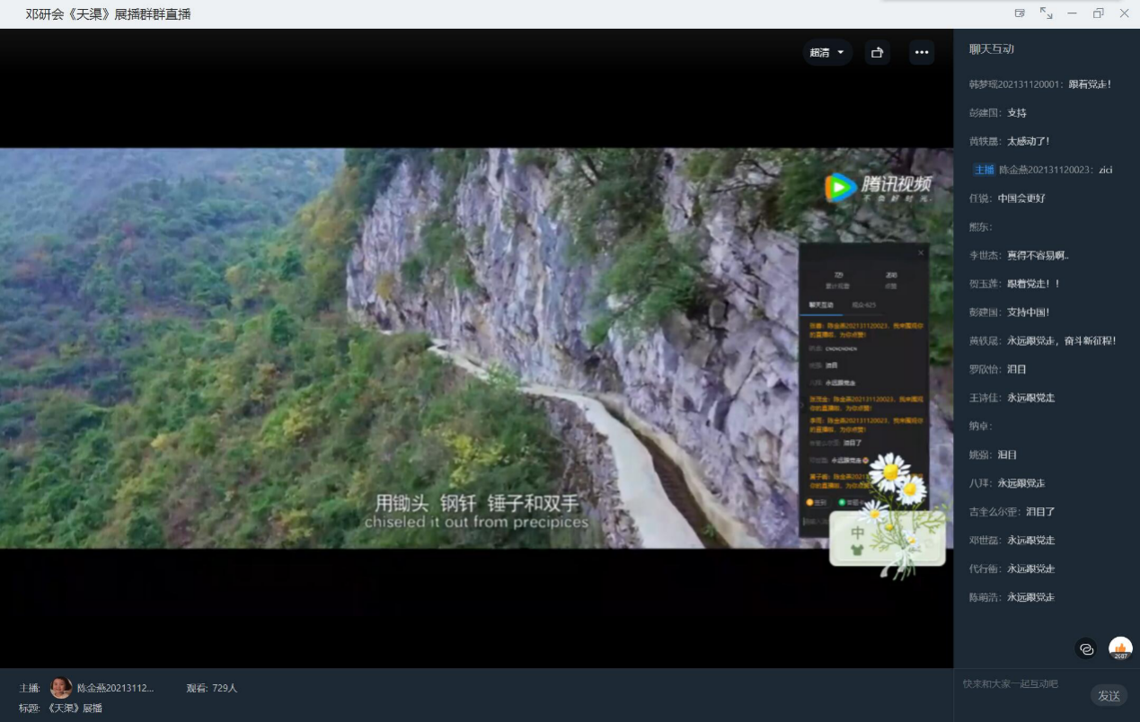 为庆祝中国共产党第二十次全国代表大会胜利召开,使同学更加深刻地了解到我们党在改革开放以来为实现中华民族伟大复兴所做出的巨大贡献,邓小平理论研究会于11月25日开展线上《天渠》电影展播活动。在观影中,同学们可以直观地感受到我们以黄大发同志为代表的党员干部在建设美丽中国时的不屈意志和坚定信念,同时也使同学们学习到“甘于奉献、勇于担当、忠于职守”的无私奉献精神,并继续继承、发扬下去。