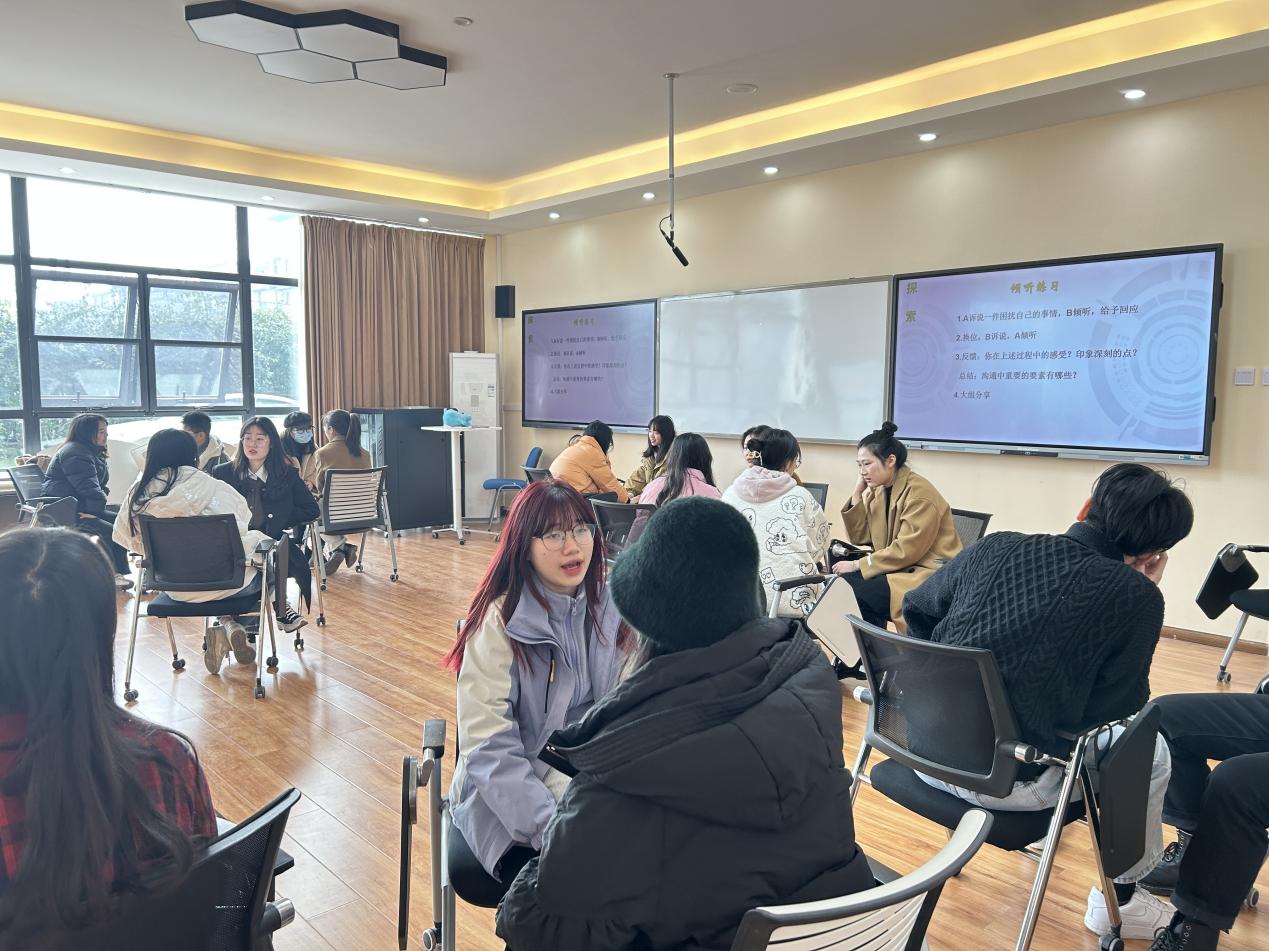 培训过程中,罗贤老师以幽默风趣的语言,生动形象的案例,引导同学们关注心理健康。首先让同学调整心态,平静倾听。他通过案例“内心小剧场”进行真诚指导与分析,详细讲述自助与助人的方法,增加同学心理危机干扰的知识和技能,使同学能正确主观的考虑行为和语言,分析事情来龙去脉,再鼓起勇气与陌生学生沟通。罗贤老师告诫同学出现问题时要沉着冷静,控制情绪去全面衡量和思考,一定要怯除自卑心理,实行自我鼓励,而不是一味指责自己。在平时生活中,还要依据社会交往经验,贴近事实,理智判断自己的言谈举止,来认知内心深处的意境,大胆勇敢的与家人朋友沟通,敞开心扉,让爱和阳光常驻心间。在欢快轻松的气氛下,活动达到高潮,大家也踊跃发言,积极分享了自己的感受,互相交流、学习。通过罗贤老师正确引导,学生们加强了自我调节能力,在今后的生活中能更顺利的应对各种压力和处理各种人际关系。