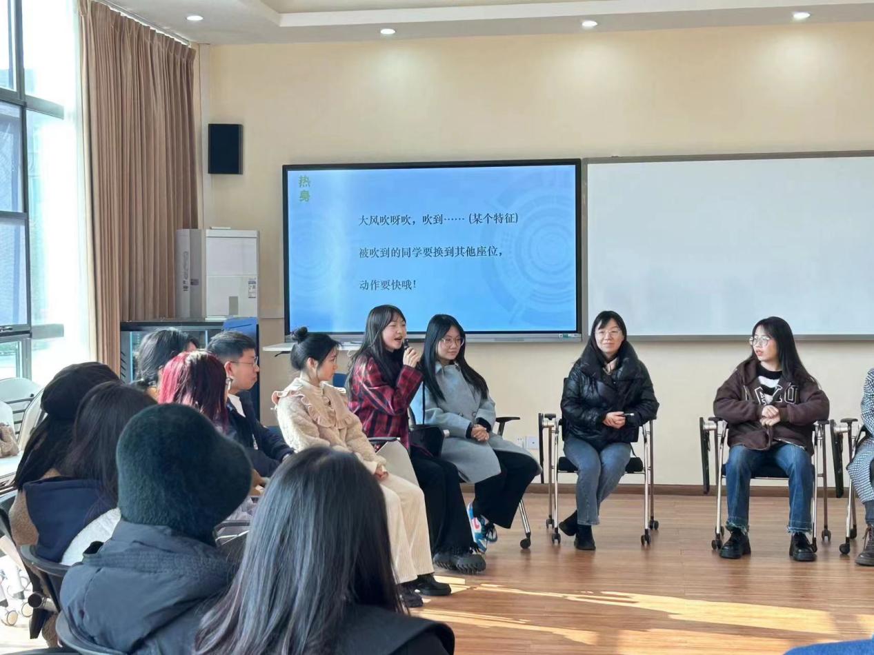 罗贤老师为了活跃现场气氛,促进学生互相认识,让学生们做游戏“大风吹、口香糖”活动,活动需要学生共同配合、精力集中才能顺利完成。被大风吹到的同学是要换位子的,然而动作稍微慢一点,就失去位子。同学们开心的积极主动的密切配合,使游戏充满了欢声笑语。在同学们放飞心情、快乐玩闹声中,体验式心理辅导活动开始。