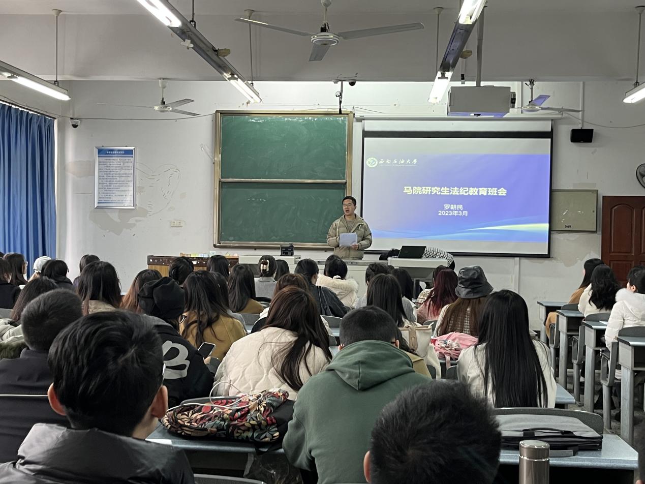 为增强马克思主义学院研究生的法律意识,提高其自我保护能力,营造文明、平安、和谐的校园育人环境,3月2日下午,马克思主义学院于博学楼A308教室开展了研究生法纪教育主题班会。本次会议由研究生辅导员罗朝民主持,2022级全体研究生参与。