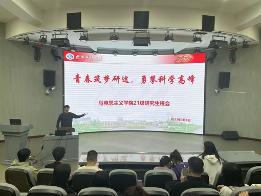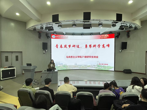 青年是实现中华民族伟大复兴的先锋力量。国家的希望在青年,民族的未来在青年。为深入贯彻学习党的二十大精神,进一步引导马院学子成为“有理想、敢担当、能吃苦、肯奋斗的新时代好青年”。我院2021级研究生于2023年3月8日下午在思学楼C110开展“青春筑梦研途,勇攀科学高峰”主题班会。