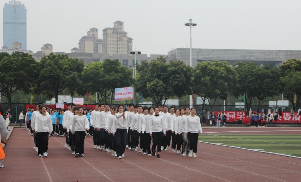 我院方阵队迈着整齐的步伐入场。他们迈着整齐的步伐,喊着“坚定理想、誓言铿锵、请党放心、强国有我”的口号向主席台走来,展示着马院学子蓬勃向上的朝气。