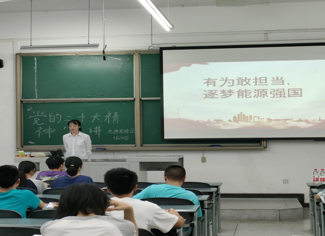 宣讲人王涵首先讲述了能源对我国高质量发展的重要性,接着围绕着我校勇担时代使命从白手起家到世界一流的主线讲诉了我校的艰苦奋斗史。通过此次宣讲,同学们更好地了解了我国推动能源革命的重要性和必要性,不仅激发了同学们勇担能源报国的时代大任,也坚定了同学们为推动我国社会主义现代化建设的奋斗决心。