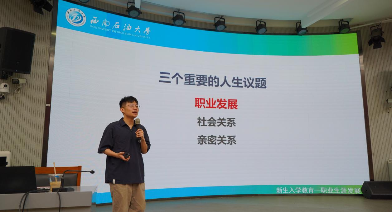 会议伊始,首先,张亦弛老师介绍了职业生涯发展理论及生涯发展相关概念,指出确立生涯发展目标应结合自己人生阶段扮演的不同角色,建立正确的职业观念。其次,张亦弛老师通过介绍应对转变的过渡理论,指导学生如何在新环境中应对挑战与变化,制定应对策略。最后,张亦弛老师围绕三个重要的人生议题展开讲解。一是在职业发展上,建议通过实习、访谈等方式来真实了解不同职业发展方向,从而寻找适合个人的职业发展道路。二是在社会关系上,应具备有效沟通的三条核心思维即目标思维、事实思维、需求思维。三是通过斯腾伯格的“爱情三角形理论”来讲述如何构建良好的亲密关系。