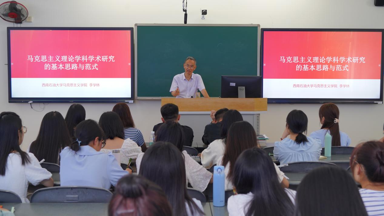 为提升研究生学术研究的专业性、创新性、规范性,提高同学们的辩证思维和理性逻辑。2023年9月13日下午,西南石油大学马克思主义学院在思学楼B206举办“马克思主义理论学科学术研究的基本思路与范式”专题讲座。此次讲座由四川省学术和技术带头人、研究生导师李学林教授主讲,马克思主义学院研究生辅导员罗朝民主持,全体马克思主义理论2023级硕士研究生参加。
