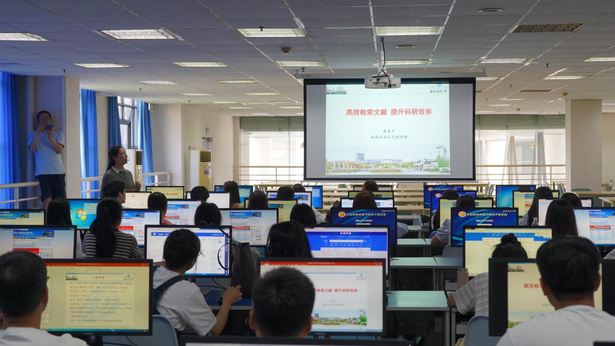 为帮助2023级新生更好利用图书馆资源,提升科研效率,增加学习能力,2023年9月13日上午,西南石油大学马克思主义学院在图书馆六楼电子阅览室开展了“高校检索文献,提升科研效率”的主题讲座。本次讲座由西南石油大学图书馆肖春平老师主讲,马克思主义学院2023级全体研究生参加。