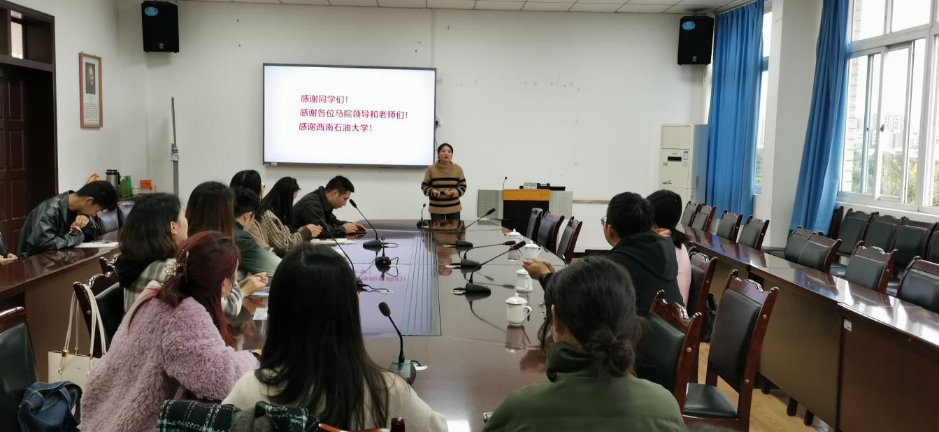 为切实做好马克思主义学院毕业生就业工作,大力构建毕业生与用人单位的交流平台,更好为用人单位输送人才。2023年11月15日,眉山药科职业学院李静梅一行来我院进行思政课教师及辅导员招聘,我院党委副书记林莉、研究生辅导员罗朝民出席招聘会。马院2021级硕士毕业生、部分2022级及2023级研究生参与此次招聘会。