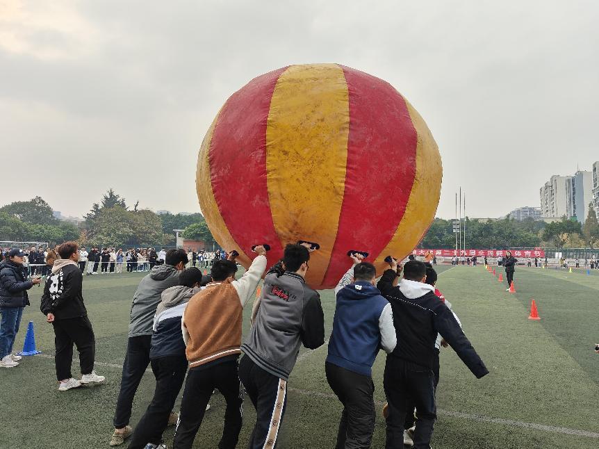 首先进行“运转乾坤”接力赛,马院参赛选手们手举圆球完成接力比赛。在阵阵有序的口号声中,大家齐心协力,留下无数精彩瞬间。