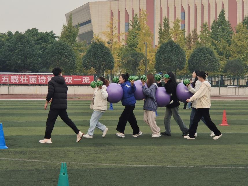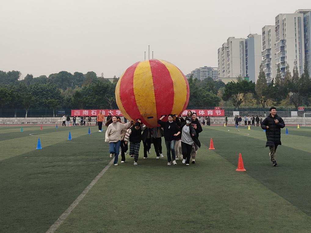 沐浴金秋的阳光,伴随满心的期盼。2023年11月18日下午,西南石油大学趣味运动会在一期田径场正式拉开序幕,马院学子积极参与其中。本次趣味运动会共设置“运转乾坤”“你抛我接”“夹球运瓜”三个项目。