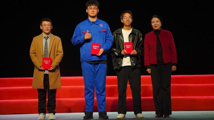 历时两个小时,比赛进入振奋人心的颁奖环节。获得最佳服装奖的是马克思主义理论2023级2班,他们身着蓝色工装,挥舞五星红旗,歌声嘹亮,领奖时,高喊“我们工人有力量”,点燃了全场的气氛。获得最佳表演奖的是思想政治教育2021级1班,他们头戴红头盔,身着白衬衣,歌曲交接之际,上演整齐划一的“换装”,从工人意志的歌颂者变身追逐星光的“赶路人”。