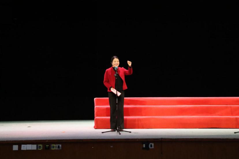 “马院学子要‘在马信马,在马言马’,积极传播马克思主义理论的声音,语言是一种形式,歌声也是一种形式”马院党委副书记、纪委书记林莉代表学院致辞。随后,林老师献唱《沂蒙山小调》,用优雅婉转的歌声将众人带入音乐的世界,精彩角逐正式拉开帷幕。