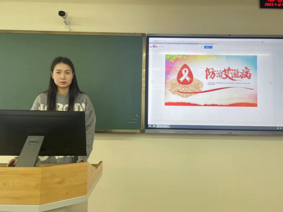 首先,综合服务部部长颜晓彤对本次活动进行介绍和宣讲。从艾滋病的概念、特点,艾滋病病毒的传播途径等方面为学生们讲解艾滋病防治知识,详细分析了当前艾滋病流行与防治形势,指出了艾滋病防控工作的方向和途径,为同学们上了一堂生动有趣的防艾课。
