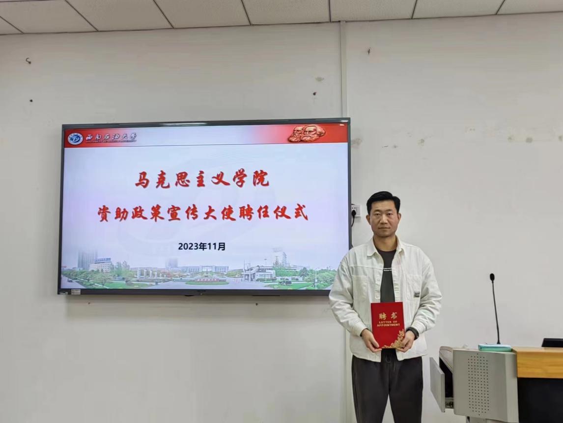 在全面深化对国家资助政策的理解和宣传的背景下,马克思主义学院于11月15日下午在思学楼D507成功举行了资助政策宣传大使聘任仪式。此举标志着学院在资助政策普及和宣传方面迈出了坚实的一步。