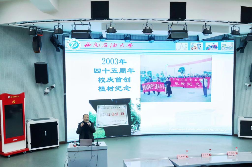 张明洪教授的讲座以“挚爱与忠诚”为题,从学校建设、学校发展以及未来展望三个方面展开。在学校建设方面,张教授以他入学时所交第一个月的伙食费收据和第一学期讲义费收据展开,用有趣的故事和感人的语言为同学们分享了学校诞生的历史背景以及学校建设初期的艰苦条件;在学校发展方面,张教授为同学们讲述了学校从西南石油学院成为西南石油大学,从建校时的四个系、七个专业到现在学科专业涵盖理学、工学、管理学、经济学、文学、法学、教育、艺术8个学科门类,本科专业78个的“双一流”建设高校的开拓创新,艰难而又光辉的发展历程;在未来展望方面,张教授说到,现在是学校进行继续创业的关键时期,前辈们的“接力棒”已经传到了同学们手中,希望同学们全方位立志成才、努力学习、提高道德水准,用实际行动为母校的继续创业添砖加瓦。