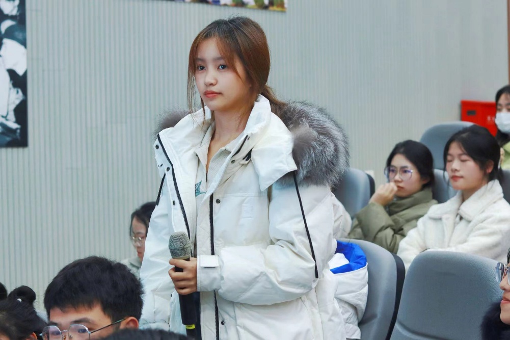 讲座落幕,张明洪教授与同学们亲切互动,进行交流。在这个过程中,同学们提出自己在学习和生活中的困惑并认真听取张教授的解答,从而明确人生目标,朝着正确的方向奋力拼搏。