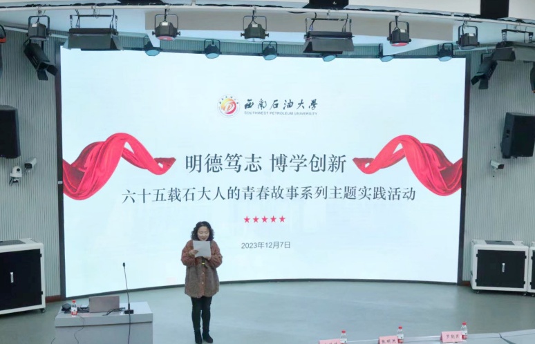 为弘扬西南石大精神,致敬前辈、激励来者,培养学生爱国爱校情怀,2023年12月7日,我校首届毕业生、西南石油大学教授、博士生导师张明洪应邀在思学楼C110开展了“挚爱与忠诚”主题讲座,马院研究生辅导员罗朝民、马院与法学院近两百名学生参加了此次讲座。讲座由马院研究生教研室主任文婷婷主持。