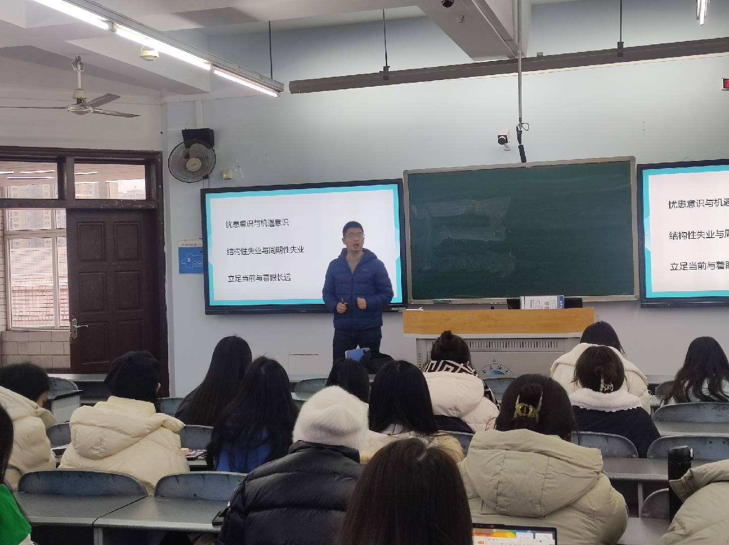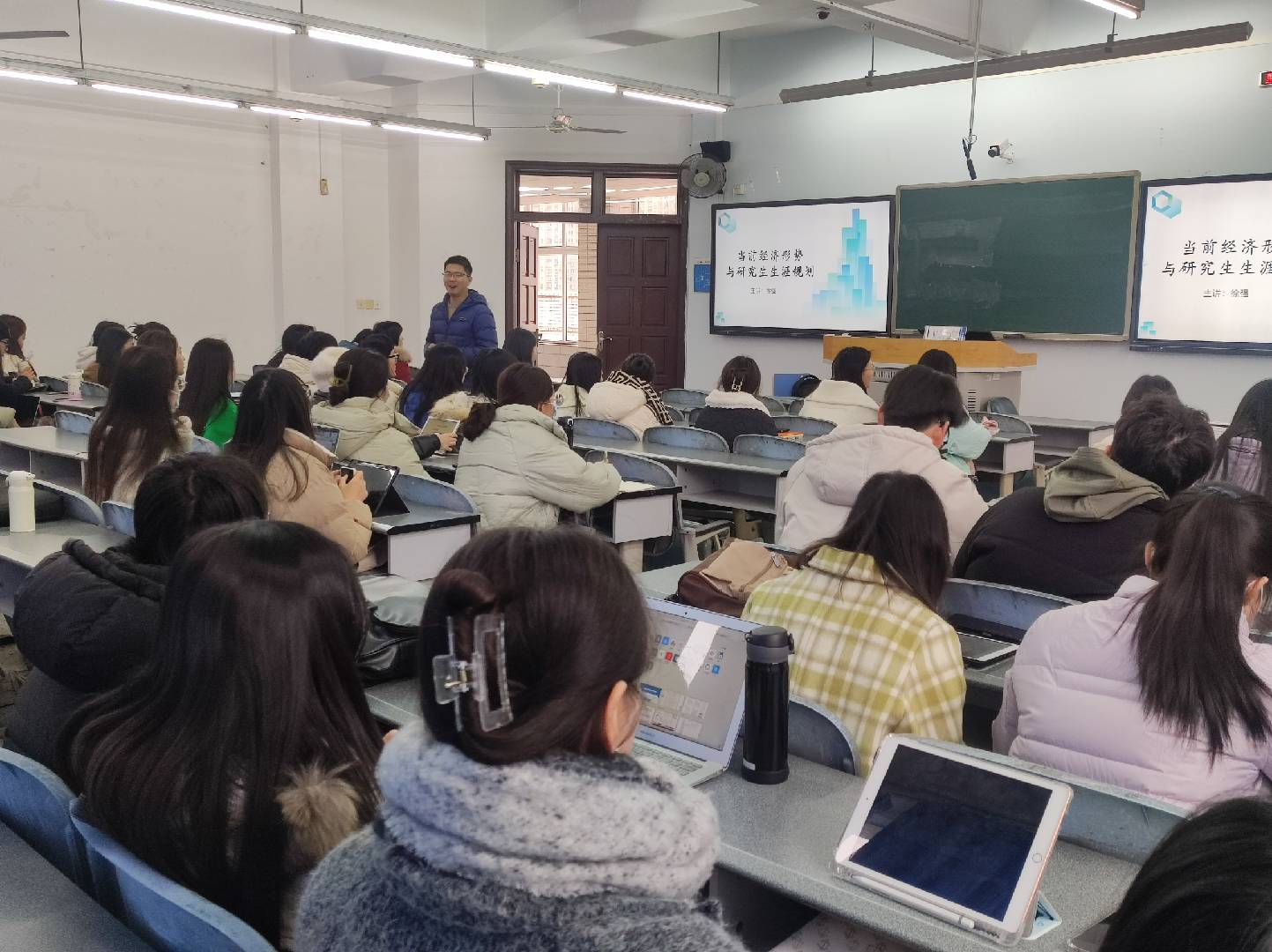 徐强老师从我国宏观经济政策展望、研究生如何应对当前经济形势等方面深入剖析了当前国际国内经济形势,为同学们的研究生学习生涯和职业生涯规划廓清了迷雾。徐强老师针对经济发展前景、数字经济、乡村振兴等问题展开了分享,拓展了同学们的视野。此外,徐强老师还就“忧患意识与机遇意识”“结构性失业与周期性失业”“立足当前与着眼未来”等问题与同学们展开了交流互动。