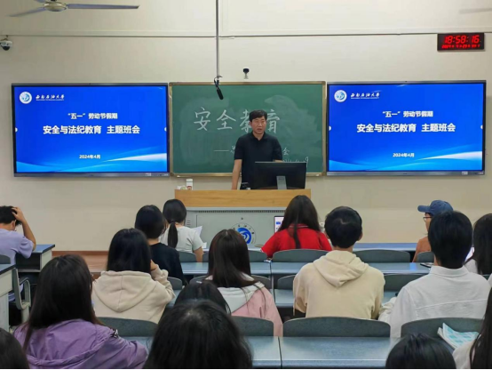 “五一”假期将至,为确保同学们度过一个平安、健康、充实、愉快的假期,4月29日,马克思主义学院在博学楼B504教室,组织全院本科生召开“五一”劳动节假期安全与法纪教育主题班会。本科生辅导员李锦韬、宋永伟,学院全体本科同学参加。