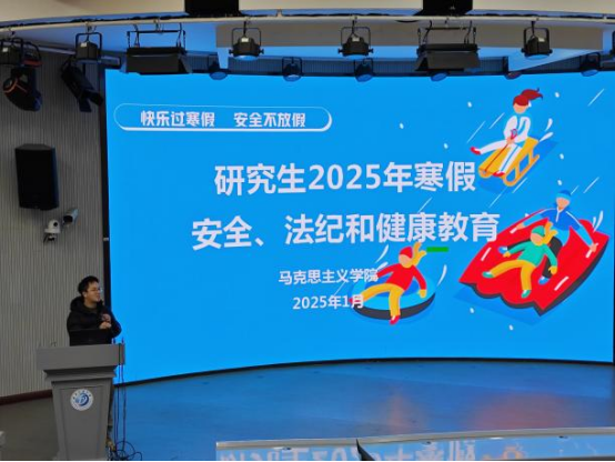 岁末将至,为切实做好假期安全教育工作,引导学生强化安全法纪意识,提高防范能力,根据学校《关于2025年寒假放假安排的通知》,2025年1月2日,马克思主义学院于思学楼C110开展“学生假期安全、法纪和健康教育”主题班会,辅导员罗朝民老师主持,马院研一、研二学生参加。