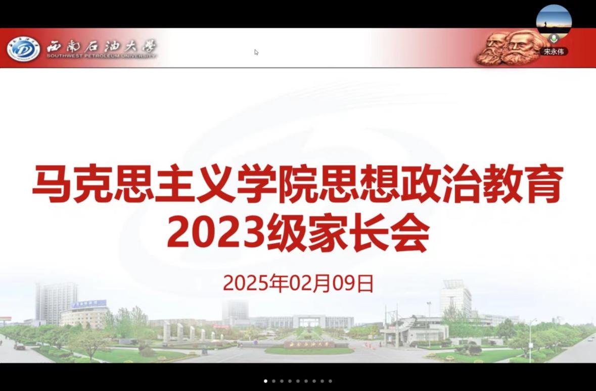 会议伊始,宋永伟向与会家长介绍了思想政治教育专业2023级学生的整体情况,总结了学生们从进入大学校园以来在学业成绩、学科竞赛、社会实践三个方面取得的显著成绩,对同学们在日常学习和生活中的积极表现提出肯定和表扬。他指出,思想政治教育专业2023级学生在学习过程中能够端正学习态度,积极主动探索求知,具有浓厚的学习热情和良好的学习氛围,在日常生活中能够互帮互助,积极主动参与各类学术讲座、社团活动、学科竞赛和志愿服务活动,不断提高自身综合素质,实现多元化发展。来自全国10余个不同省份的72名同学,在西南石油大学马克思主义学院共同组成了一个温暖奋进、团结友爱的大家庭,希望在学校老师和学生家长和共同努力下,学生们能够继续保持良好的学习氛围,不断取得新的更好成绩,实现更好的成长和进步。