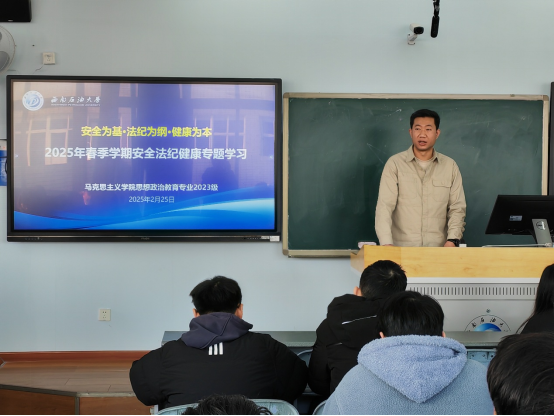 为深入贯彻安全教育理念,强化学生的法纪观念与健康意识,2月25日,马克思主义学院思想政治教育专业2023级在思学楼C506教室开展2025年春季学期安全法纪健康专题班会。辅导员宋永伟主持,思想政治教育专业2023级本科生全体参与。