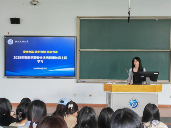 龚倩以近年来高校典型安全事件为切入点,结合相关法律法规,系统阐释了校园安全、网络安全、人身安全与法治建设的内在关联。她通过解析校园借贷纠纷、网络侵权等案例,引导学生树立“遇事找法、解决问题靠法”的法治思维,并指出法纪不仅是社会秩序的保障,更是个人权益的防线,要求全体学生严守校规校纪,恪守法律底线,争做遵纪守法的模范公民。同时,龚倩结合大学生健康数据,从科学作息、合理膳食、心理调适等方面提出建议。她特别强调,健康是学业与事业的基础,倡导学生以健康生活方式提升学习效能,为未来职业生涯筑牢根基。在讨论环节,龚倩积极鼓励学生将理论认知转化为实践行动,在日常生活与学习中践行安全理念、弘扬法治精神、注重身心健康。