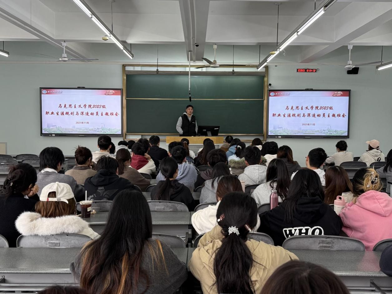 为进一步引导学生明确未来发展目标,科学规划职业生涯,2025年10月30日,马克思主义学院2023级思想政治教育专业于思学楼A317召开“职业生涯规划与深造动员”主题班会。本次班会由本科辅导员李锦韬老师主讲,全体2023级思政专业学生参加。