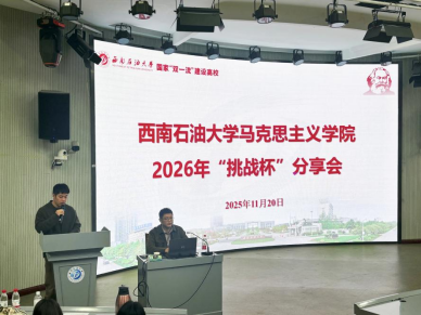 为帮助学生明晰2026年“挑战杯”竞赛规则、提升参赛竞争力,马克思主义学院于2025年11月20日晚上7点在思学楼C110教室成功举办2026年“挑战杯”分享会。本次分享会特邀西南石油大学校团委副书记、石油与天然气工程学院副教授、硕士生导师于浩老师主讲,马克思主义学院各年级学生积极参与。