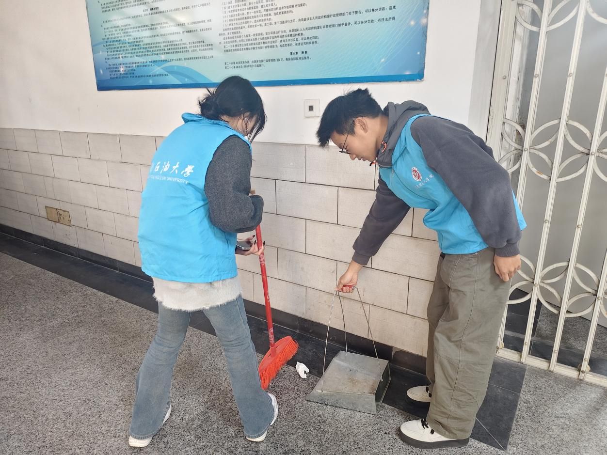 冬日暖阳下,志愿者们手持清洁工具,在思学楼D区集结,青年志愿者协会工作人员明确分工安排,志愿者们分组进行教室清扫。每一步动作,每一次擦拭,每一次挥扫,每一次垃圾入桶,都是马克思主义学院学子对“践”行劳动精神的生动写照。各位志愿者各司其职,协调分工,不放过教室各处细微点:办公桌下,砖缝之间。通过亲身实践,志愿者们认识到,整洁优美的校园环境离不开每一位劳动者的辛勤付出,每一个劳动成果都值得被珍惜和尊重。
