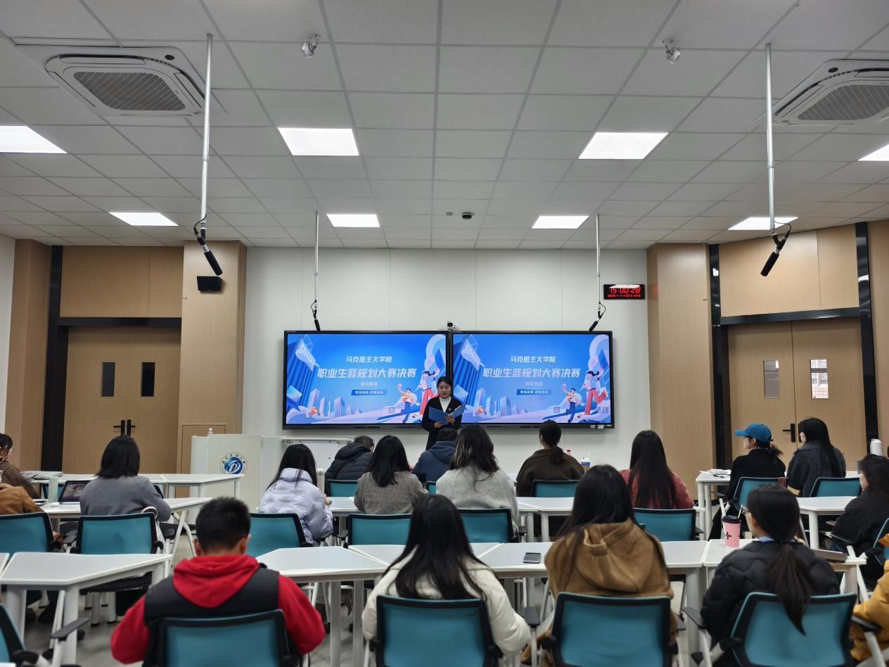 为引导马克思主义学院学子立足马克思主义理论学科特色,精准对接就业赛道需求,明确职业发展方向,提升职业规划与就业实践落地能力,将个人成长融入国家发展与行业就业大局,同时搭建职业探索、就业交流展示的优质平台,西南石油大学马克思主义学院 2025 年职业生涯规划大赛院级决赛(就业赛道)于 2025 年 11 月 22 日 15:00 在思学楼 A108 顺利举行。学院硕士生导师钟义锟、赵聃,兼职辅导员刘青紫及我院学子齐聚现场,共同见证 13 位参赛选手在就业赛道上的职业理想与规划风采。