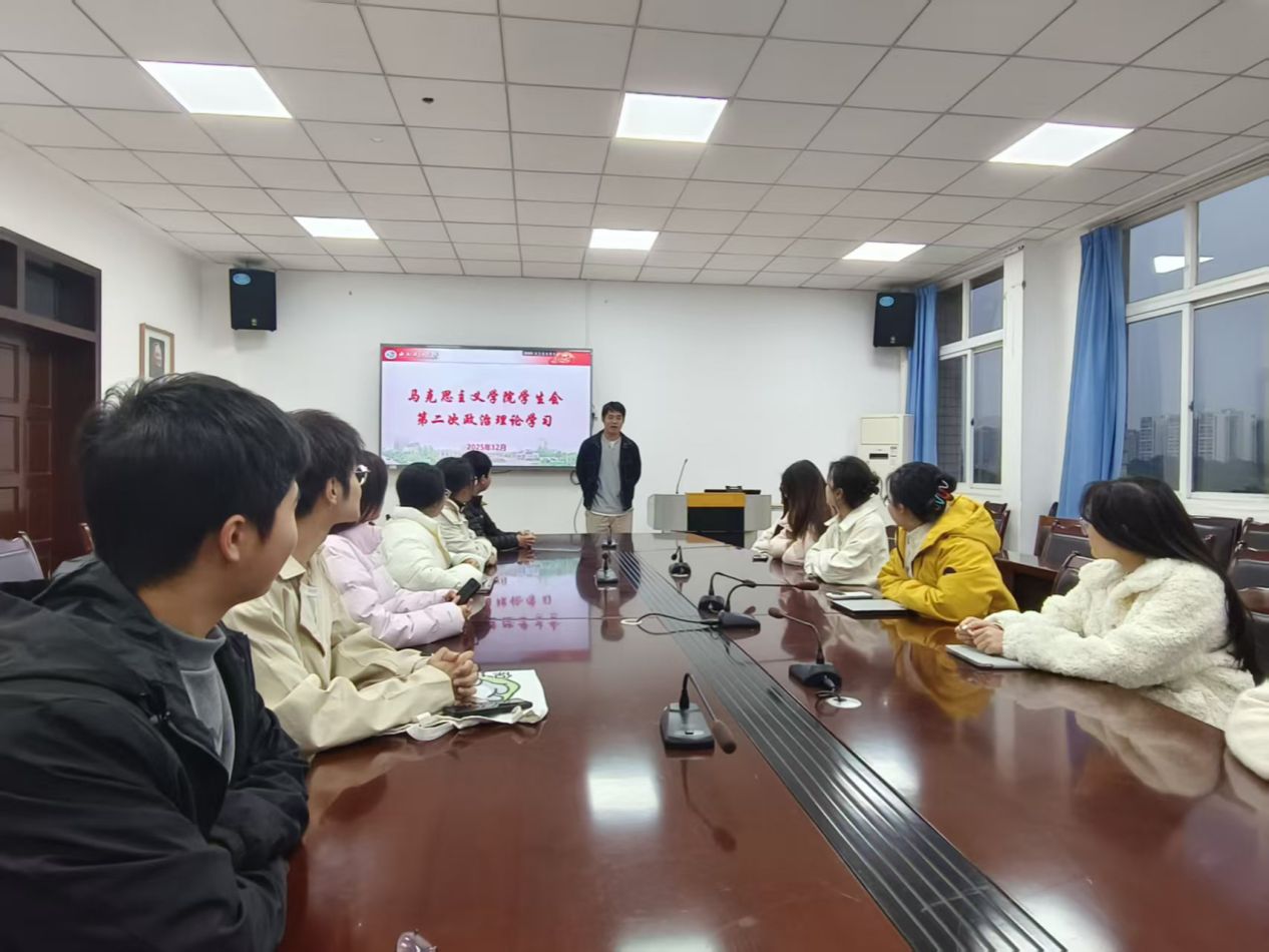 为深入学习贯彻党的二十届四中全会精神,切实筑牢学生干部思想根基、提升服务同学的能力与责任担当,12月1日,马克思主义学院学生会在思学楼D507教室成功举办主要学生干部第二次政治理论专题学习会。学院学生会主席团成员、各部门负责人及核心骨干齐聚一堂参与学习,会议由学院团委书记李锦韬主持。
