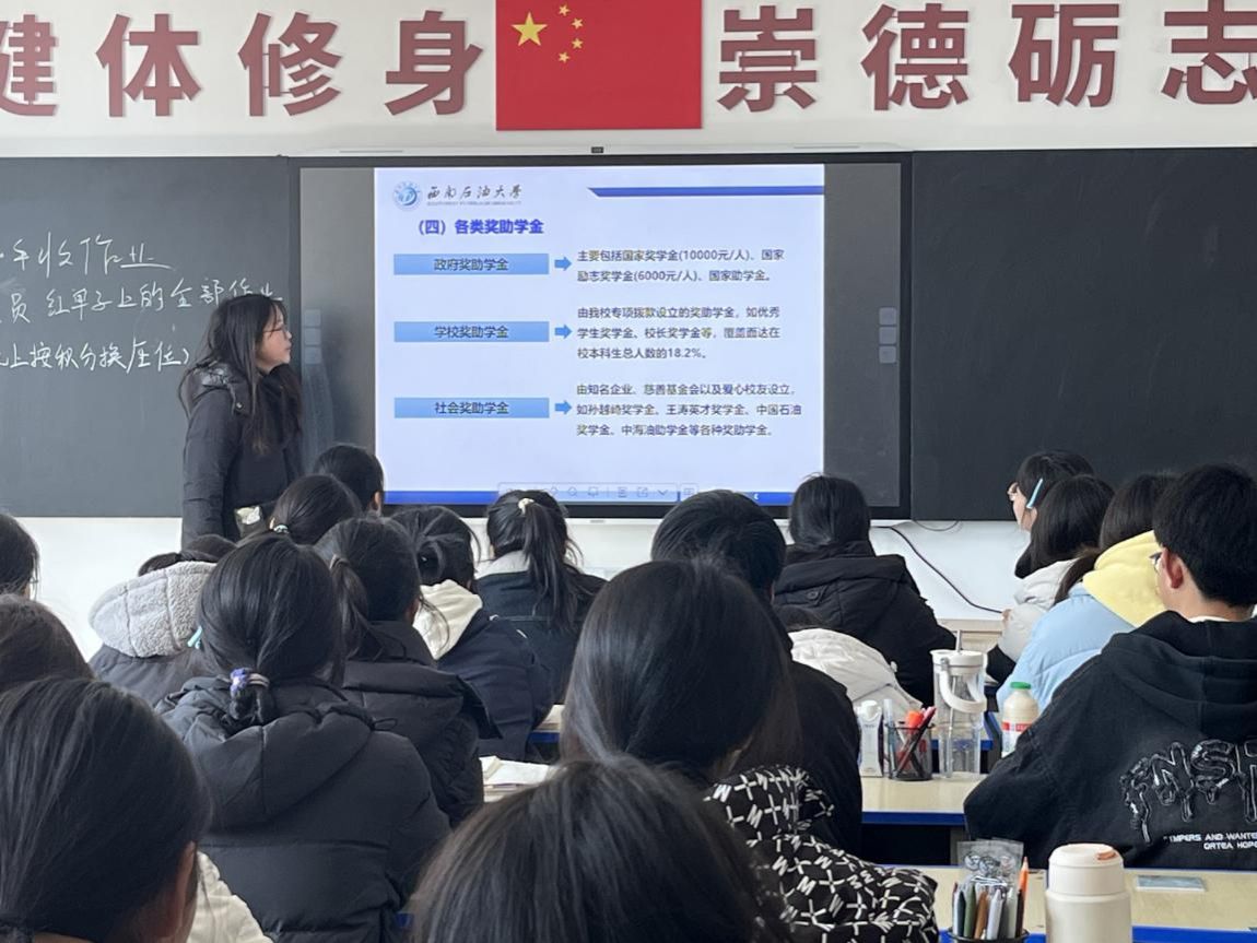 本次宣讲以“助学·筑梦·铸人”为主线,采用政策讲解+成长故事+互动答疑的形式开展。宣讲团成员围绕“入学前、入学时、入学后”三个阶段,系统解读西南石油大学“奖、助、贷、勤、补、免、偿”全方位资助体系,重点讲解助学贷款申请流程、各类奖助学金的申请条件与享受规则,清晰解答了学生最关心的实际问题,让大家全面了解国家与学校“不让一名学生因家庭经济困难而失学”的坚实保障。