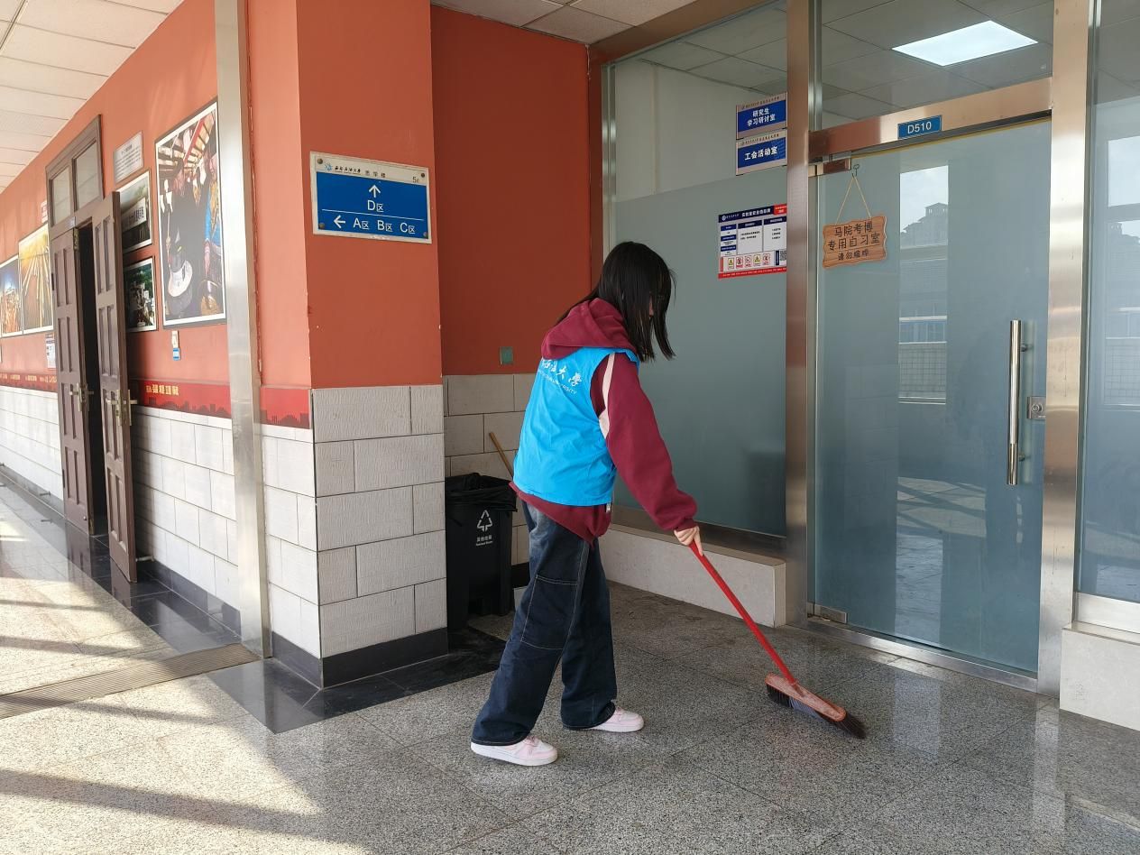 为进一步营造整洁优美、文明有序的校园环境,引导青年学生在实践中感悟劳动价值,3月26日,马克思主义学院2024级1班的同学们在思学楼开展教室清扫专项活动,用实际行动为校园文明建设注入青春力量。