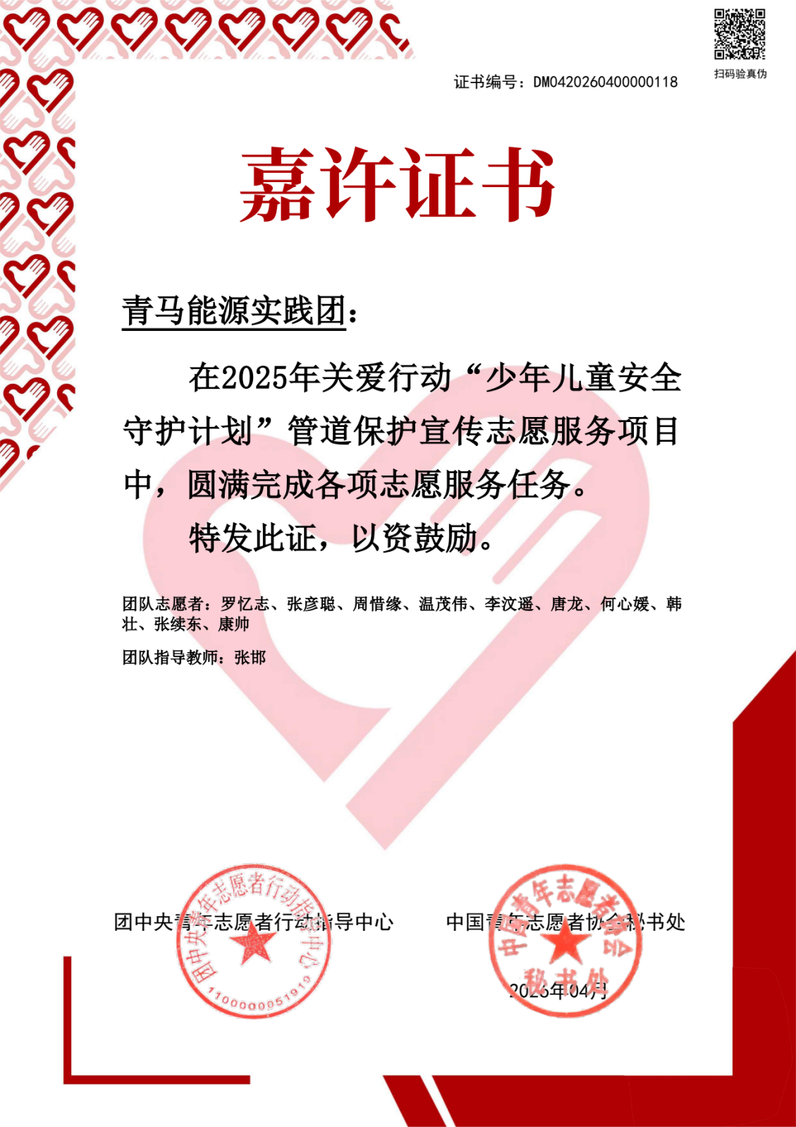 近日,2025年关爱行动“少年儿童安全守护计划”管道保护宣传志愿服务项目评选结果揭晓,我校马克思主义学院“青马能源实践团”凭借扎实的专业素养、创新的宣讲模式及显著的社会成效,成功获评全国“优秀团队”。
