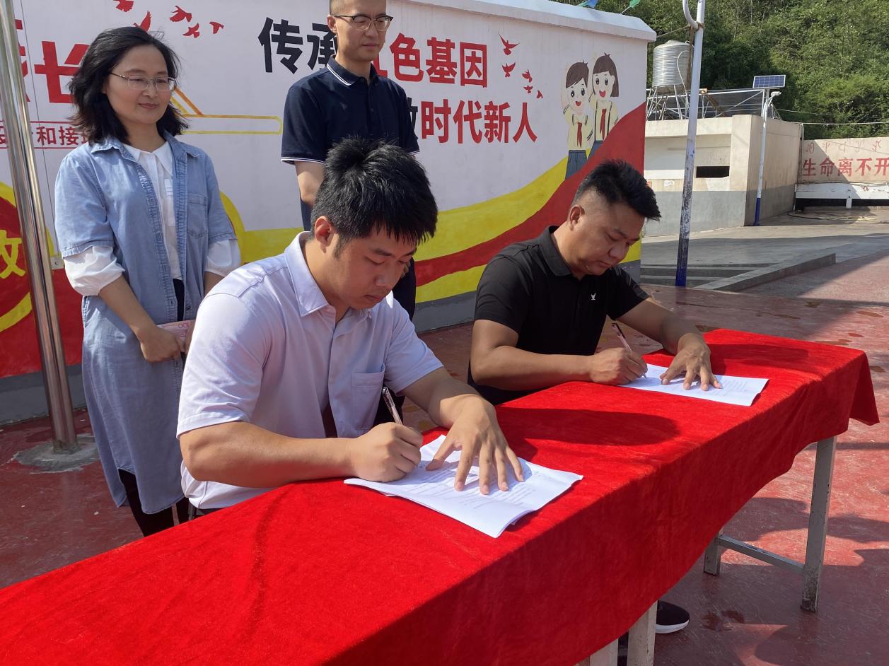 捐赠仪式上,李锦韬老师同阿尔伍沙校长签订了捐赠协议,本次捐赠将对三岔河小学的十九名家庭困难学生进行资助。