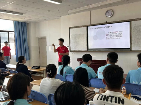 教学开始前,团队成员邓亚波对师生们分析了科学用嗓的重要性和意义。随后,邓亚波给师生介绍了喉部控制和呼吸调控练习,带领师生进行气泡音、音高变化和快吸慢呼等练习。最后邓亚波讲解了嗓音保护的基本知识,帮助师生在日常工作和交流中进行科学发声。